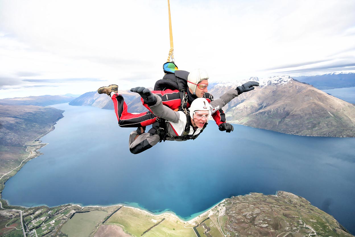 With a tandem parachute specially designed for two people, you will board an aircraft and soar to around 13,000 feet (approximately two miles high!). When you and your instructor leave the plane, you will fall at about 120 mph, descending to 5,000 feet in around 40 seconds. At this point, your instructor will open the parachute and fly you safely back to earth!